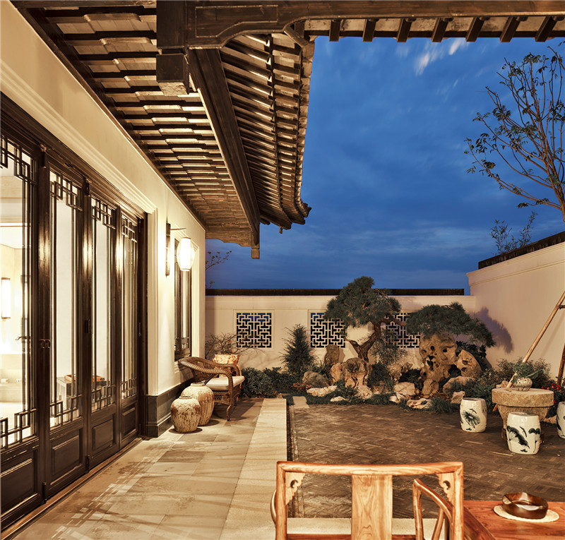 設計以具有禪意的、略帶野逸的中式園林為整體基調,