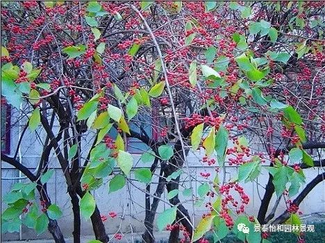 觀賞用途:枝條繁茂、葉色深綠、果實鮮紅,觀賞效果頗佳。花果并美,具有較高的觀賞價值。春天可賞花聞香,秋天可觀紅果累累。春末夏初層層開花,金銀相映,遠望整個植株如同一個美麗的大花球,花朵清雅芳香。在園林中,常將金銀木叢植點綴于建筑周圍,觀花賞果兩相宜。